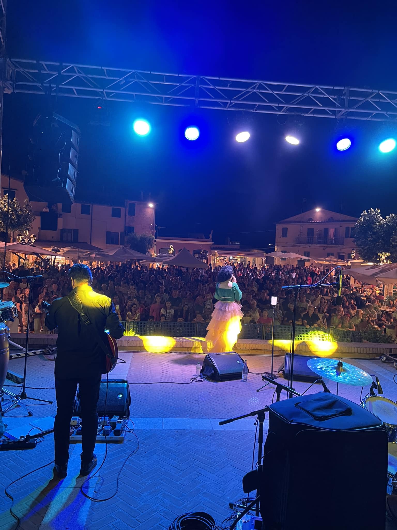 Quando canta nella sua Isola d’Elba ha una marcia in più. Nella serata di martedì 11 luglio il concerto di Irene Guglielmi, performer elbana ormai affermata a livello assoluto, ha strappato applausi al foltissimo pubblico di Capoliveri, palcoscenico d’eccellenza dell’estate elbana. Una voce potente e graffiante, una presenza di palco straordinaria, Irene ha affrontato un repertorio pop – dance che ha coinvolto tutti i presenti fino all’ultima canzone, affiancata da una band elbana di tutto rispetto, composta da Andrea Puddu alla chitarra, Marco Carducci al basso, Alessio Buccella al piano, Federico Righi alla batteria e Paolino Stoppa alle percussioni.