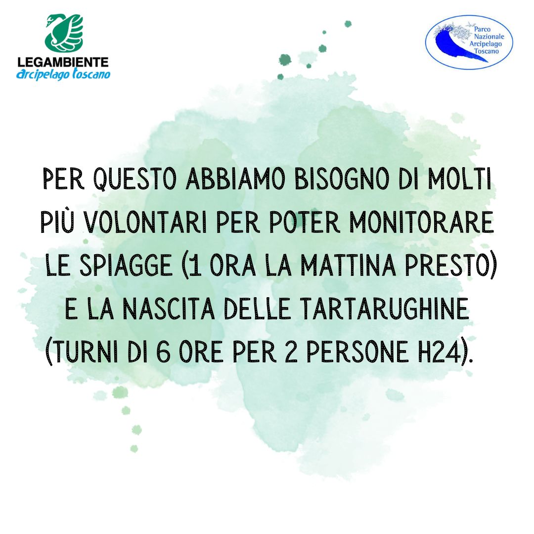 Per l’isola d’Elba Il 2023 è un anno da record per la presenza di nidificazione di tartarughe marine Caretta caretta: per ora ci sono state 5 nidificazioni a Galenzana, Marina di Campo e Fetovaia (comune di Campo nell’Elba), Lacona (Capoliveri) e spiaggia del Capitanino (Marciana Marina), le schiuse sono previste tra metà agosto e metà settembre, e alcune, sopratttutto le ultime 3, saranno molto ravvicinate tra loro. Questo però significa che per poter monitorare fin da subito le spiagge (1 ora la mattina presto) e poi la nascita delle tartarughine (turni di 6 ore per 2 persone h24). i tartawatcher organizzati da Legambiente dovranno essere molti di più.