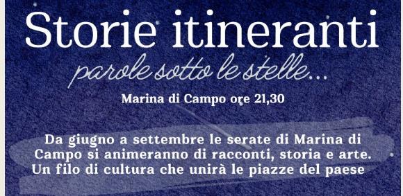 Storie itineranti, parole sotto le stelle è la rassegna culturale estiva del Comune di Campo nell’Elba, organizzata grazie alla collaborazione tra comune di Campo nell’Elba, Biblioteca Comunale, Cooperativa LINC, La tana dei sogni book&wine e Club del Mare.