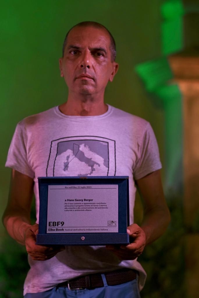 In serata il Consorzio Comieco attraverso lo staff del festival ha assegnato anche un riconoscimento ad Hans Georg Berger, fotografo e scrittore di fama internazionale, che ha legato il suo nome all’Elba e, in particolare, all’Eremo di Santa Caterina d’Alessandria, che si trova a pochi chilometri da Rio e che è diventato, grazie a Berger, un rifugio per artisti e intellettuali, un rifugio molto spartano e appartato. Inoltre il filantropo tedesco ha consentito la realizzazione, accanto all’Eremo, del Giardino dei Semplici Elbano, dove fra l’altro sono conservate essenze tipiche della flora mediterranea dell’isola. Dalla fine degli anni Settanta Berger è riuscito a far rivivere un luogo che era rimasto abbandonato e a rifunzionalizzarlo, cioè a dargli una seconda vita tramite una nuova veste. Nell’Eremo si fondono in una sintesi mirabile elementi artistici e culturali da un lato, ed elementi naturali, ambientalistici e paesaggistici dall’altro.