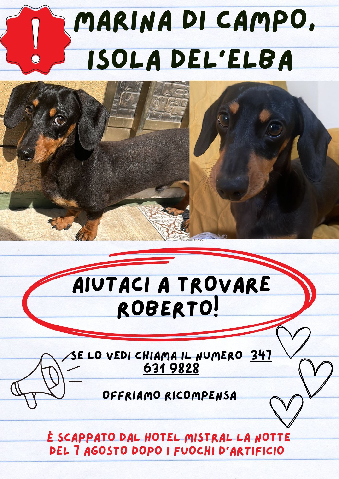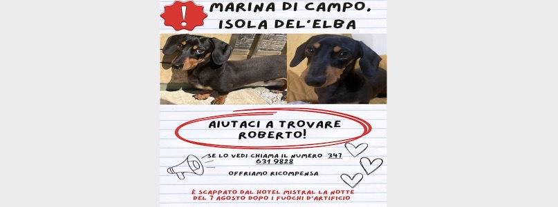 Un cane di piccola taglia è scappato a Marina di campo la notte del 7 agosto durante i fuochi d’artificio. I proprietari offrono una ricompensa chi lo trovasse. Il cellulare da chiamare è : 347 631 9828