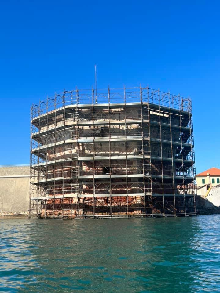 La prima fase dei lavori interessa la Torre a pianta ottagonale situata all’imboccatura della Darsena Medicea, detta anche del Martello o di Passannante (dal nome dell’attentatore di re Umberto I di Savoia che vi venne rinchiuso) e consiste principalmente nel restauro delle facciate lato mare. Il tutto per completare la sistemazione del monumento iniziata lo scorso anno con un primo intervento di ripristino delle facciate lato terra la cui spesa è stata in parte coperta con fondi regionali erogati attraverso il bando “Città murate della Toscana”. I lavori appena iniziati prevedono il completo restauro dei paramenti murari dei cinque prospetti esterni lato mare con tinteggiatura e finitura in toni identici a quelli dell’originaria colorazione del monumento. I lavori in corso, fortemente voluti dall’amministrazione comunale, sono i primi che vengono effettuati da oltre 70 anni a questa parte nella Torre della Linguella. Un precedente intervento di restauro, con un cospicuo impiego di cemento armato, era stato eseguito agli inizi degli anni ’50 da parte del Genio Civile di Livorno per ricostruire le parti distrutte dai bombardamenti durante il secondo conflitto bellico.