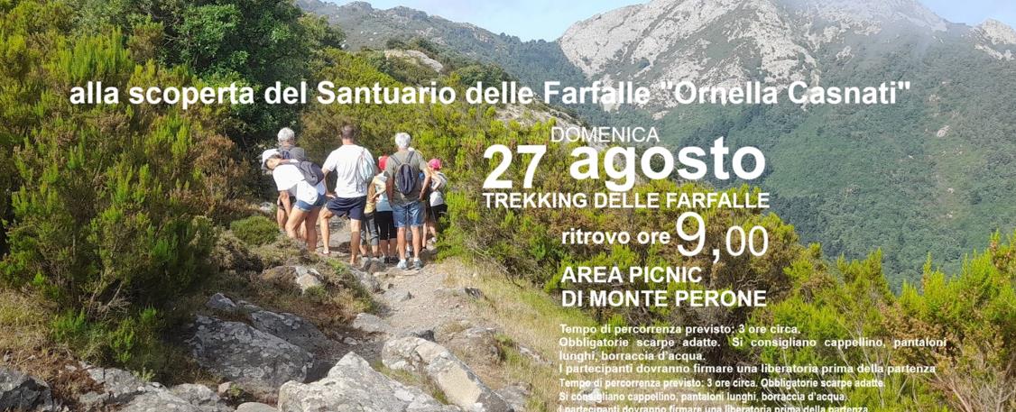 Appuntamento con il trekking lento a Monte Perone per Domenica 27 agosto . Il ritrovo è alle ore 9,00 all’area picnic di Monte Perone (raggiungibile da Poggio per chi proviene da Marciana e Marciana Marina e da Sant’Ilario e San Piero per chi proviene da Marina di Campo), da dove dopo la firma di una liberatoria, gli escursionisti verranno accompagnati dalle guide di Legambiente alla scoperta del Santuario delle Farfalle Ornella Casnati, lungo il sentiero punteggiato dalle immagini di 60 specie di lepidotteri diurni e della rara flora della montagna elbana.