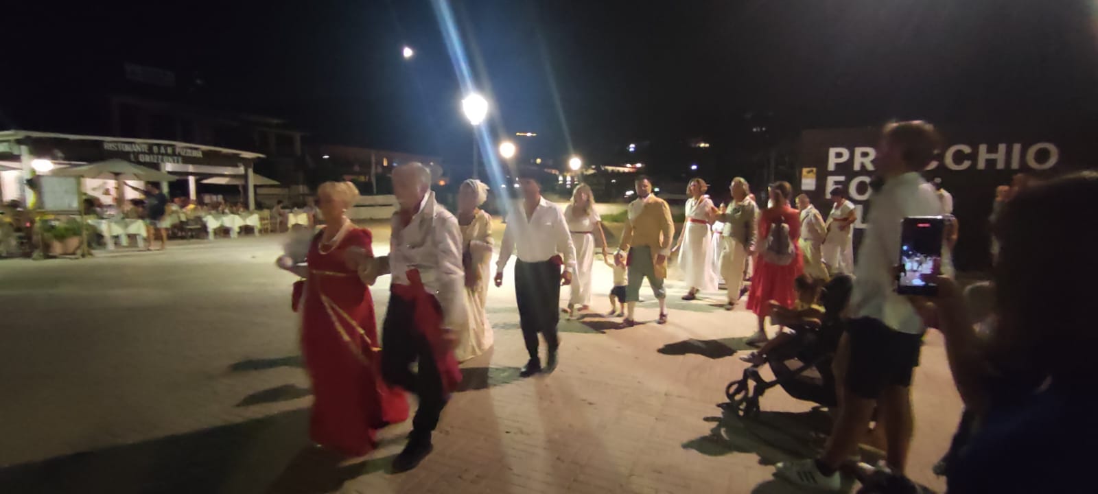 Attraverso il puntuale commento storico della Isabella Zolfino, effettuato in tutti i luoghi dove sarebbe stato in transito il lungo corteo, il pubblico ha potuto contestualmente vedere delle scene da teatro di strada e conoscere meglio i singoli personaggi e gli eventi che si manifestarono all’isola d’Elba nel 1814.