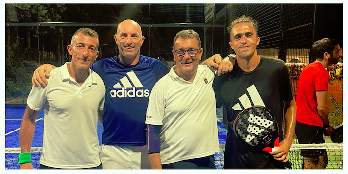 (Nella prima foto da sinistra in alto: il Presidente Pietro Paolo Pieruzzini e il Vice Sindaco Luca Baldi. In basso le prime due coppie classificate del torneo inaugurale di padel: Miceli Francesco, Sani Alessandro, Cecchinelli Riccardo e Serra Alessio)