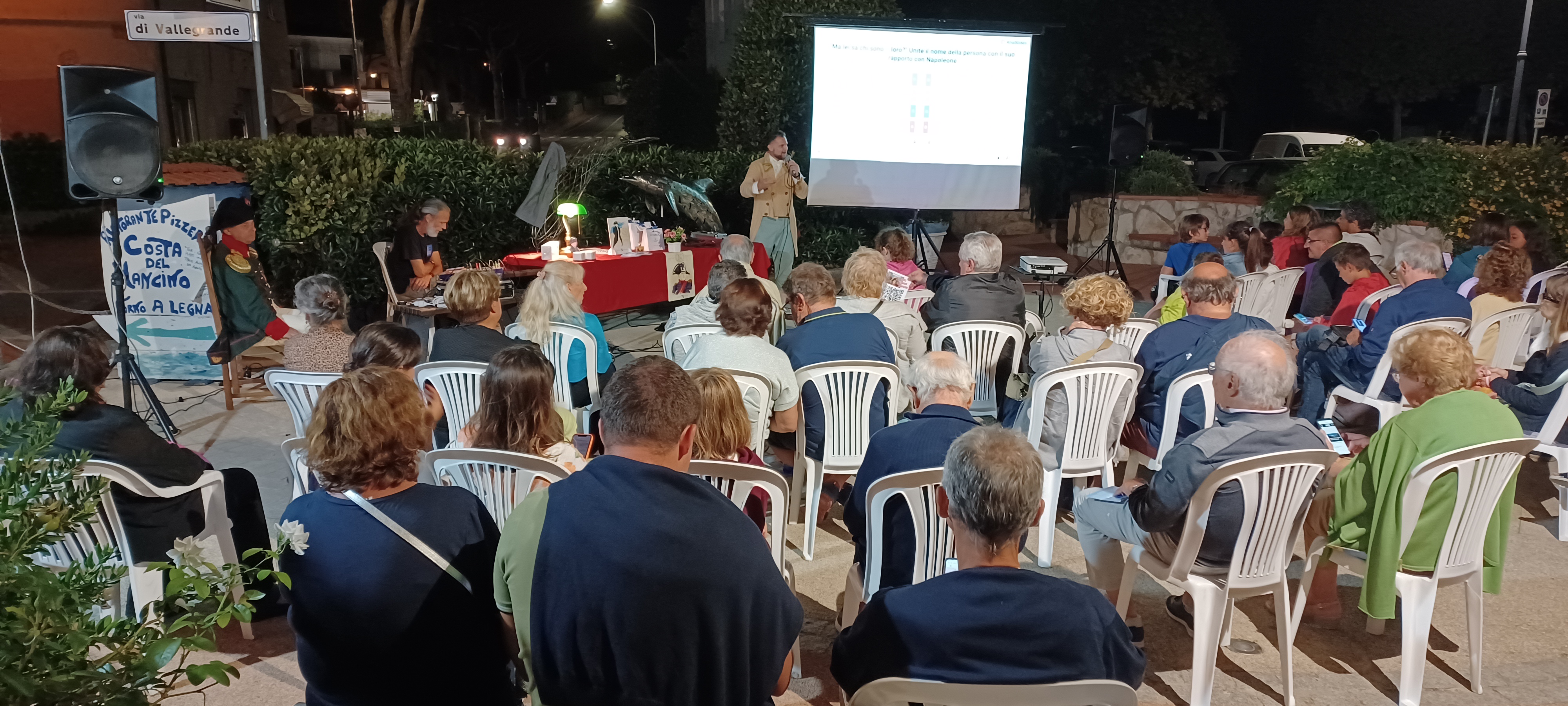 La serata era parte del percorso “Napoleon Experience”, un progetto della Gestione Associata del Turismo, a cui Procchio Napoleonica ha aderito e che proseguirà con la prossima iniziativa denominata “Aperitivo con delitto”, una pièce teatrale dove il pubblico dovrà individuare assassino, movente e arma del delitto; a Procchio, in Piazzetta dei Delfini, venerdì 8 settembre, sempre dalle ore 21.30.