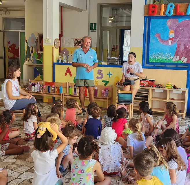 Pierluigi Costa ha raccontato a 90 bambini le proprie avventure e altre esperienze dei Messaggeri, ricordando la serenità che deriva dal contatto quotidiano col mare, in sicurezza: un senso di appartenenza e di uguaglianza fra tutti i bambini del mondo, che devono vivere in armonia con tutti gli esseri viventi. Anche a questi bambini sono stati consegnati i diplomi di nuovi Messaggeri, nel quale si sottolinea l’impegno per la tutela ambientale.