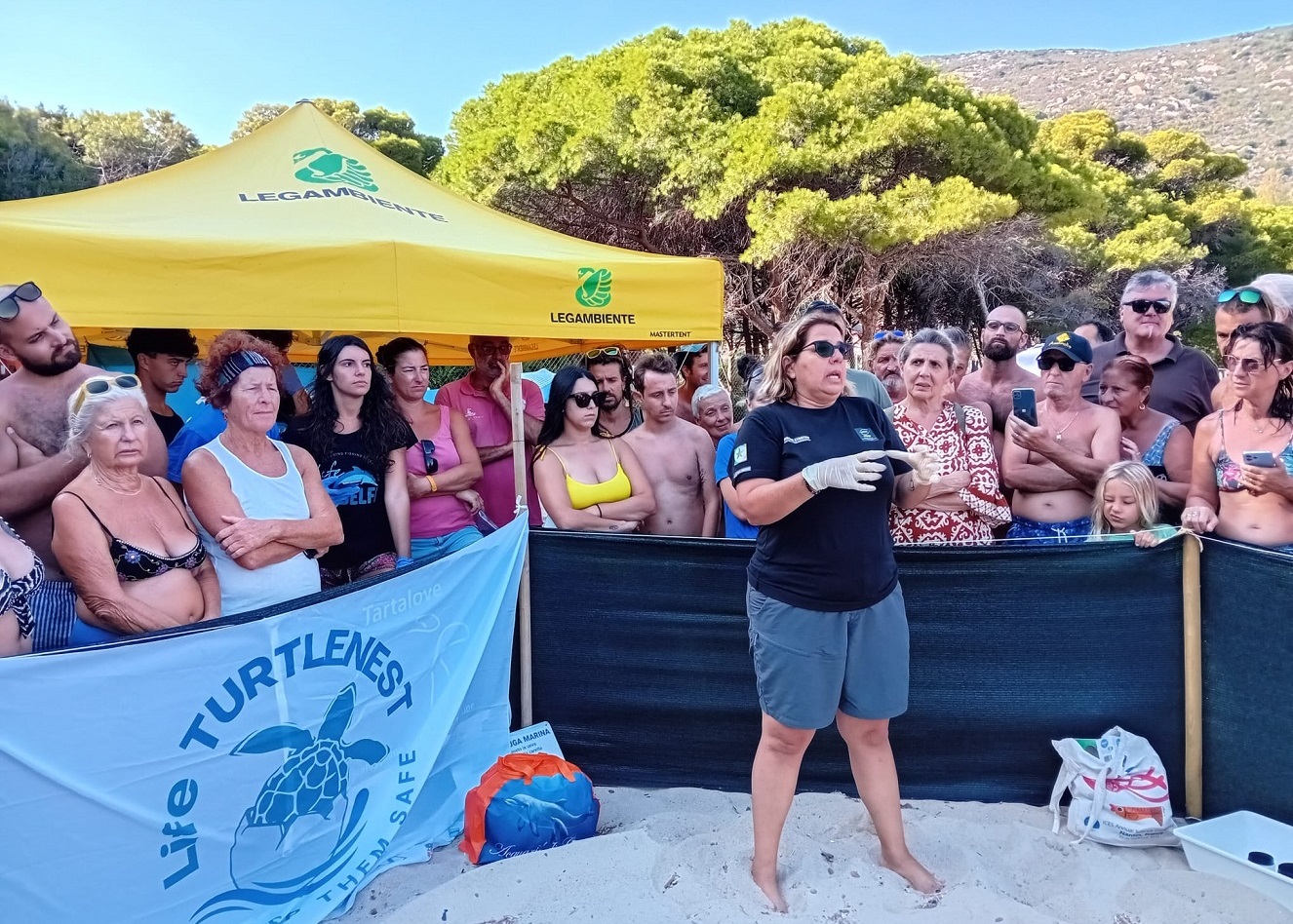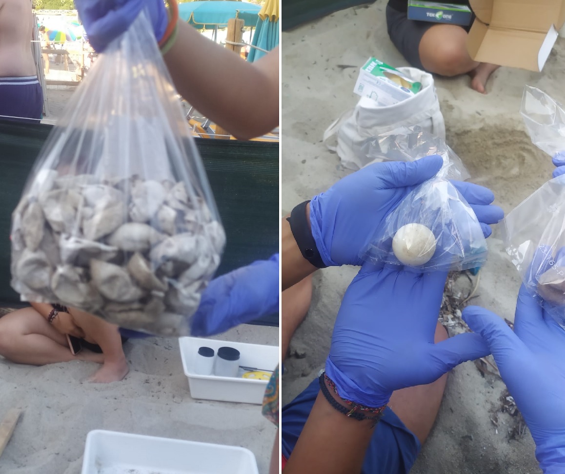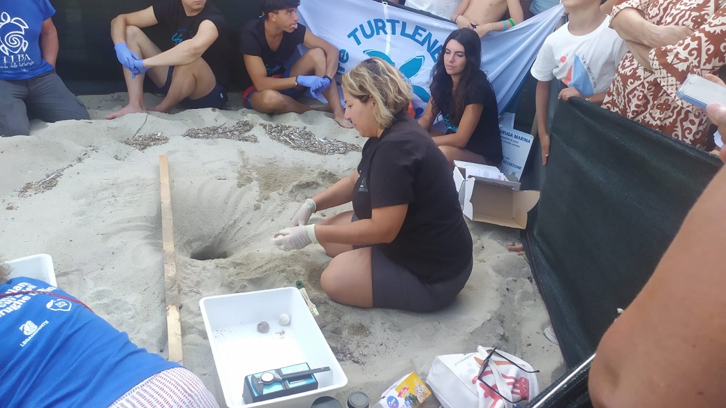 Una lezione all’aperto, mentre dal nido uscivano e venivano allineati in ordine in un vassoio i gusci rotti ed elastici delle tartarughine e solo due uova non schiuse che venivano fotografati e ripresi da decine di smartphone e suscitavano nuovi commenti e domande.