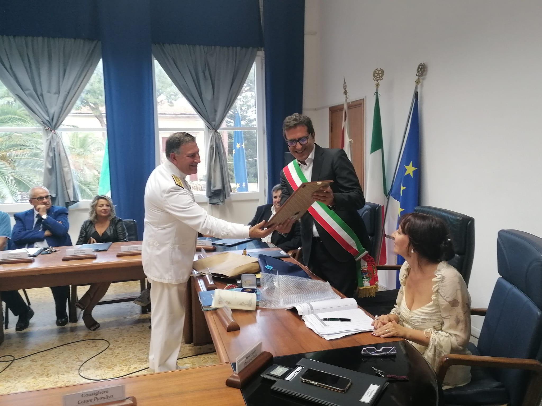 Sabato 16 settembre il Consiglio comunale ha conferito la cittadinanza onoraria all’Ammiraglio di Squadra Salvatore Vitiello. L’assemblea ha infatti deliberato, all’unanimità, di concedere all’Alto Ufficiale della Marina Militare la Cittadinanza Onoraria, quale segno di profonda stima della popolazione e riconoscimento del legame profondo instaurato con la nostra Comunità e come segno dell’alta considerazione per il suo impegno civile, sociale ed umanitario da considerare patrimonio comune da offrire come riferimento per le giovani generazioni con la seguente motivazione: “per i più alti meriti, confermati dall’esemplare impegno nell’ambito della carriera militare, dalle doti umane e dal rappresentare un modello di dedizione al servizio e alla Patria che le nuove generazioni possono guardare con ammirazione e aspirare ad emulare”.