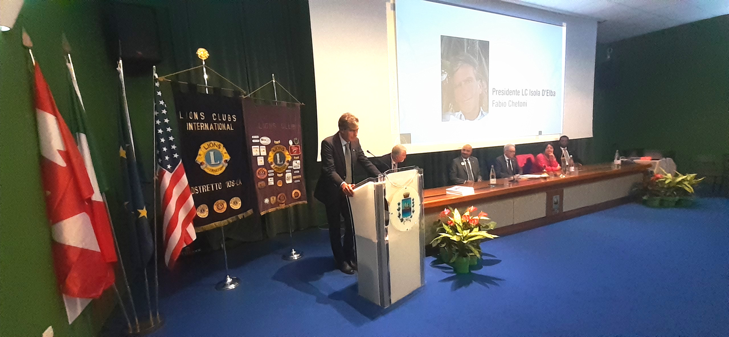Per la buona riuscita dell’incontro, frutto di una capillare organizzazione, che va dalla sistemazione in hotel, all’accoglienza all’arrivo in porto e trasferimento con navetta degli intervenuti, alla riserva di zona parcheggio in centro, alle agevolazioni sul passaggio in traghetto, al punto di accoglienza e registrazione, alla distribuzione di gadget di benvenuto, al pranzo proposto nella caratteristica chiostra della de Laugier, all’escursione guidata nel centro storico per gli accompagnatori, Chetoni ha espresso il proprio ringraziamento ai lion elbani che vi hanno avuto parte attiva, al Comune di Portoferraio e agli sponsor che hanno offerto il loro supporto: Centro Ufficio Elba, Gruppo Nocentini, Vivai Martino, Lavanderia Ilva, Moby, Toremar, Blu Navy, nonché allo staff dell’auditorium.