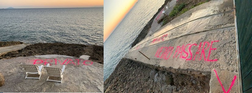 All’inizio sembrava uno scherzo, ma non lo è. Gettate di cemento a picco sul mare, con addirittura scritte con vernice spray intimidatorie per chi si azzardasse a passare di lì. Succede anche questo, purtroppo, all’isola d’Elba. E’ lecito? Lo chiediamo a chi di dovere. Intanto, grazie a chi ha effettuato la segnalazione su facebook, che giriamo prontamente ai nostri lettori, oltre a chi di competenza per eventuali provvedimenti. Ecco il post.