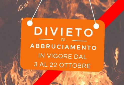 Prorogato il divieto assoluto di abbruciamentodi residui vegetali agricoli e forestali su tutto il territorio regionale considerato l’alto rischio per lo sviluppo di incendi a partire dal 3 ottobre e fino al 22 ottobre 2023 compresi.