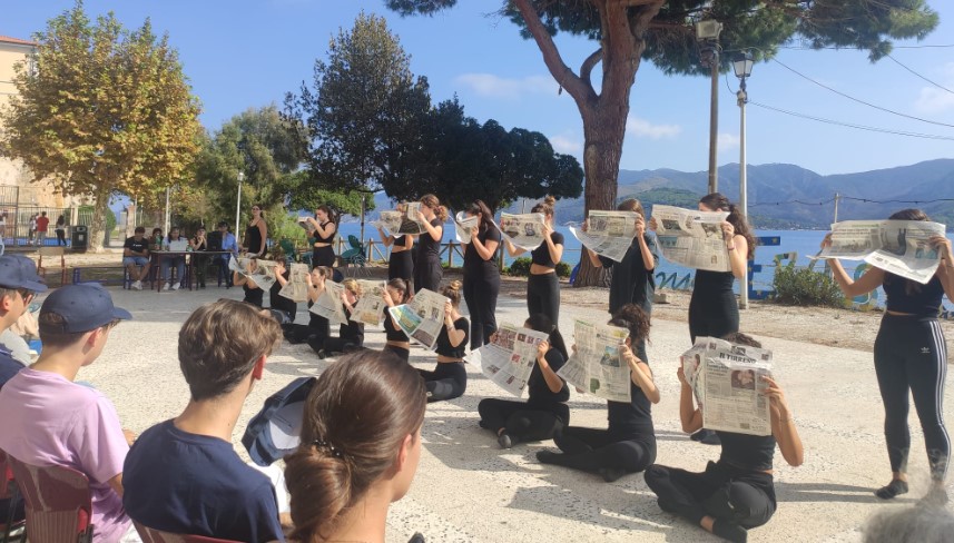 Il momento apicale della giornata è stato lo spettacolo del laboratorio scolastico teatrale Le Perle dell’Arcipelago del Foresi, tenutosi nel cortile del Grigolo e con lo sfondo della vista mozzafiato dell’accesso alla rada di Portoferraio. Il laboratorio, ideato e coordinato sin dalle sue origini dalla prof.ssa Ilaria Chirici, include decine di ragazzi e ragazze di numerose classi e indirizzi del Foresi e ha perseguito negli anni l’obiettivo di includere nell’attività didattica la fioritura delle emozioni degli studenti, attraverso i linguaggi del corpo, della danza, della ginnastica artistica, della musica e del canto. Lo spettacolo di sabato ha cercato di rendere questo obiettivo attraverso il prisma di un messaggio: quello dell’importanza, vitale per realtà come quella isolana, del cammino di integrazione e costruzione dell’Unione Europea. Uno spettacolo che ha emozionato e indotto a riflettere su ciò che hanno sentito anche gli spettatori, coinvolti dai ragazzi e dalle ragazze delle Perle con una performance che abbatte la “quarta parete” e parla al cuore.
