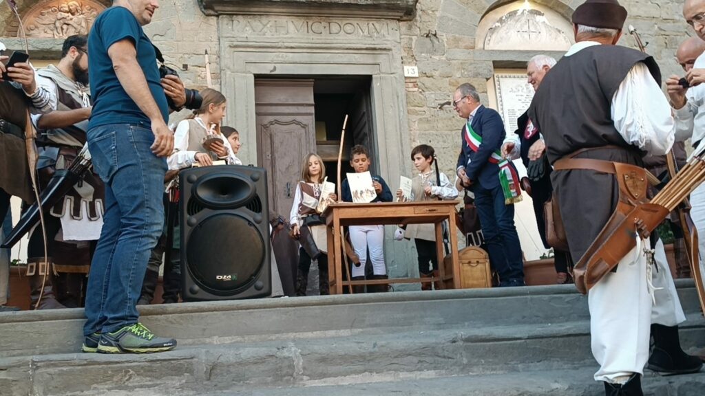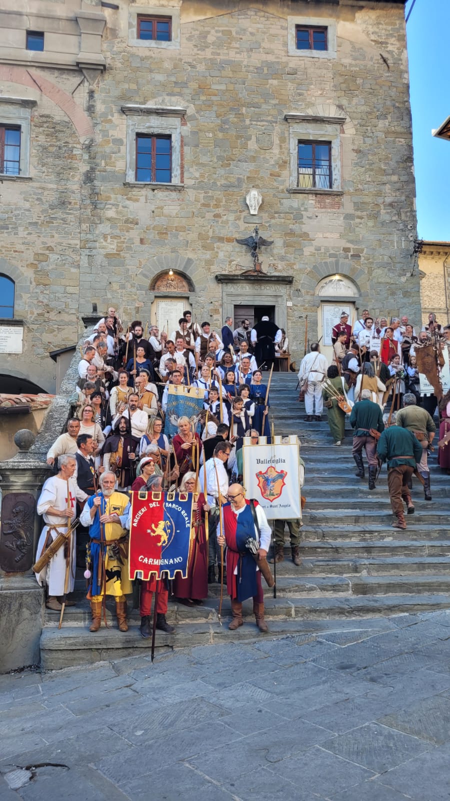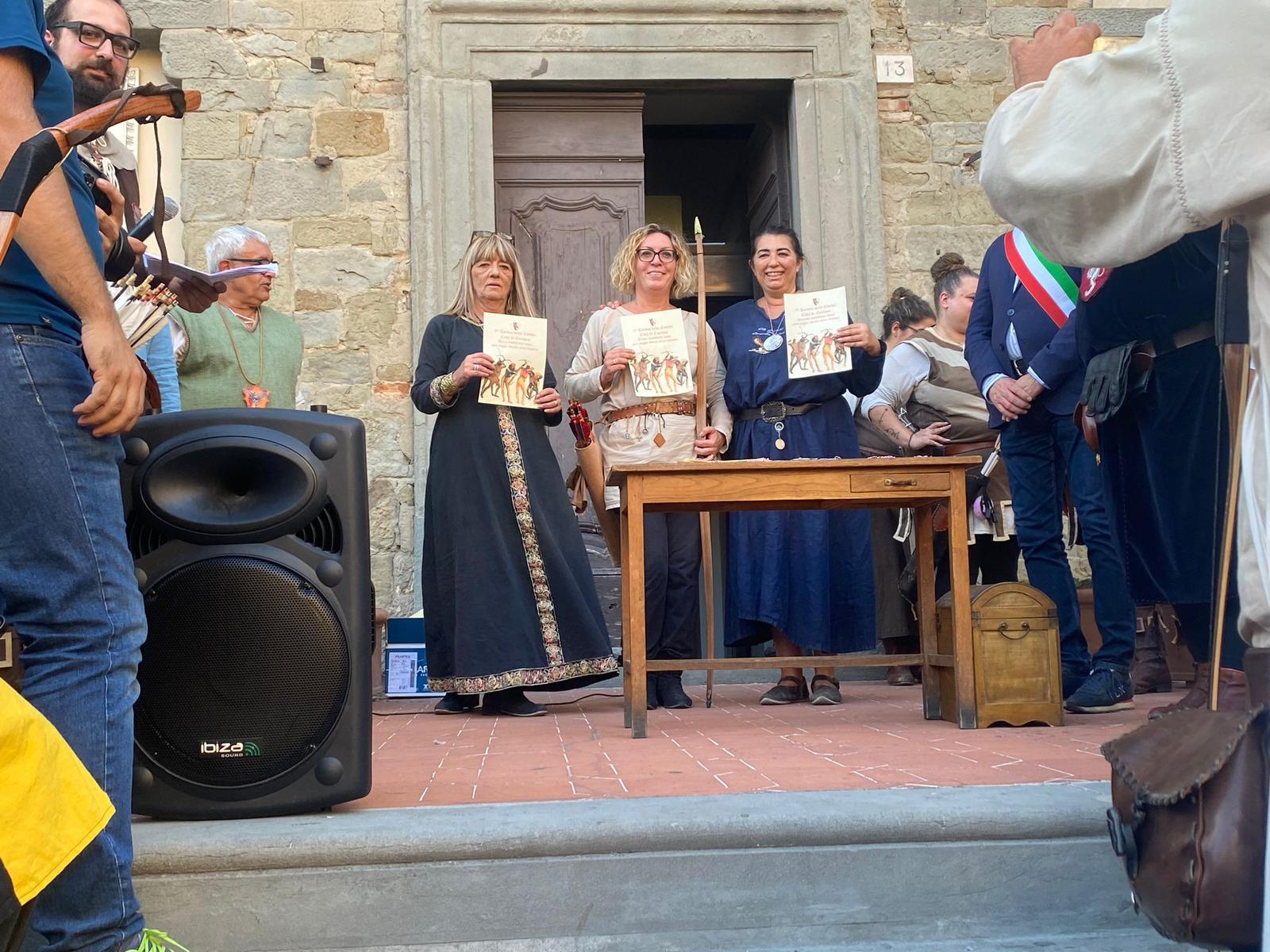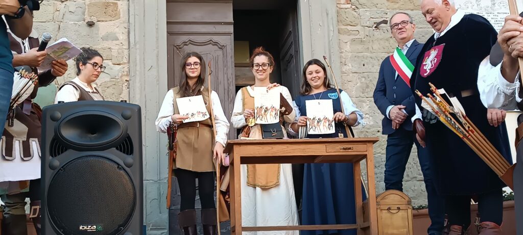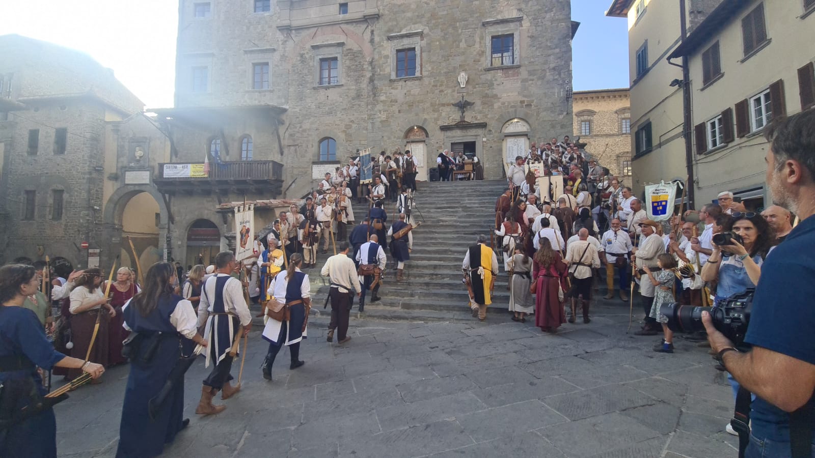 Domenica scorsa 8 ottobre,si è svolta a Cortona la penultima tappa di Campionato Nazionale Lam, in un giorno di festa per la Città ,che gode ancora di tanto turismo . Tutte le piazze e tutti i vicoli erano pieni di visitatori ,che si godevano il sole e fotografavano i nostri costumi medievali e i bersagli che erano situati anche dentro i musei, con lo stupore di noi concorrenti che abbiamo apprezzato moltissimo questa iniziativa .Tutta la gara si è svolta in scioltezza, filando veloce e tutti gli atleti hanno potuto godere dei 18 bersagli costruiti con arte e sicurezza . Il fine gara è stato accompagnato da un ottimo pranzo come tradizione Lam vuole, seguito nella piazza del Comune, da uno spettacolare gioco di bandiere ,tamburini e chiarine acclamato con un fortissimo applauso di gradimento . Passiamo alle premiazioni, svoltesi davanti ad un numerosissimo pubblico ,regalando così emozioni a tutti i concorrenti ,con il Grande Falco che per cominciare vince con la categoria più ambita e folta ,cioè quella dei Messeri Arco storico con il meraviglioso 1′ posto di Anselmi Patrizio . A seguire un ottimo 2′ posto nella categoria under 10 di Liberatori Lucio, che si prende tutto l’applauso della meravigliosa piazza .A seguire un ottimo 2′ posto nella categoria Dame foggia senza finestra di Schezzini Claudia ,che conferma ormai da tempo di stare nei posti più alti della classifica generale di Campionato Nazionale; per proseguire con un altro bel podio del 3′ posto della categoria under 17 foggia con finestra ,di Azzurra Licalzi . Ottimi piazzamenti nella categoria under 14 anche per Mazzi Tommaso a 2 punti dal terzo,di Fresta Claudio e di Nuccetelli Lorenzo.