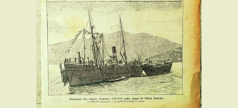 Il 22 ottobre 1886, naufraga presso le Saline di San Rocco, a Portoferraio, il piroscafo francese Gyptis della Compagnia Frassinet.