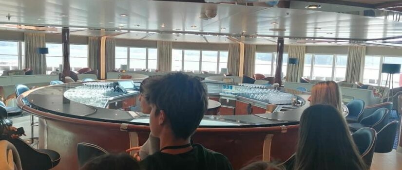 Accompagnati dalle docenti Nicoletta Minelli, Francesca Ghini, Lidia Raffa, Elena Di Mauro, Roberta Tizzani, i ragazzi e le ragazze delle Terze Scienze Umane sono stati accolti sulla nave lunga 210 metri, larga 28,5 e dotata di ben 11 ponti. La visita all’interno della nave si è concentrata sulle aree di maggior interesse per gli studenti, ovvero la biblioteca e, soprattutto, la galleria d’arte considerata la più grande al mondo su acqua, in quanto dotata di 1700 opere d’arte.