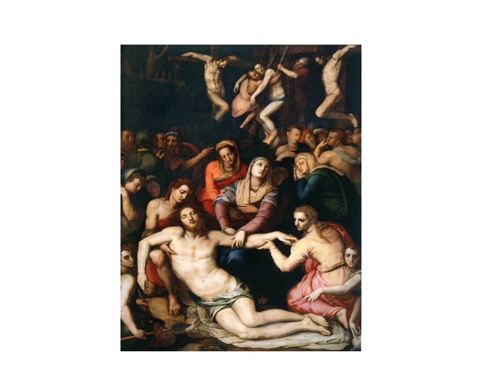 Il titolo della sala è davvero appropriato in quanto una volta era parte della navata della chiesa del SS Salvatore. Qui dentro era un altare con collocato il dipinto “Deposizione di Cristo”,(vedi foto),un quadro olio su tela, il cui autore è Agnolo di Cosimo detto il Bronzino.