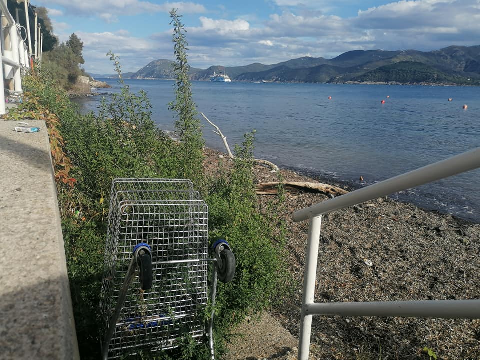 “Spettacolo, natura, decoro e civiltà in 500 metri nel centro storico di Portoferraio. Scusate, ma gli oltre 40 carrelli dei vari supermercati di Portoferraio, chi li deve togliere? Chiedo scusa in varie lingue del mondo!!!”