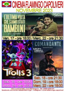 Ricco il cartellone anche al “Flamingo” di Capoliveri. Sbarca “Comandante”, la storia vera di Salvatore Todaro, con un intenso Pierfrancesco Favino (in programma sabato 18, alle 21:30, domenica 19 e mercoledì 22 novembre alle 18:00) e torna il terzo capitolo della fortunata saga per i più piccoli “Trolls 3” (sabato 18, alle 18:00, e domenica 19 novembre, alle 15:30).
