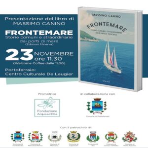 Giovedì 23 novembre, alle ore 11.30, presso il Centro Culturale De Laugier a Portoferraio, in anteprima di qualche giorno rispetto alla presentazione ufficiale al Senato della Repubblica, sarà presentata l’opera letteraria del giornalista Massimo Canino, *Frontemare’, edita da Minerva edizioni.