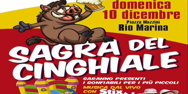 Domenica 10 dicembre a Rio Marina arriva la “Sagra del cinghiale”, organizzata dal comune di Rio e dalla Pro loco. L’appuntamento è in Piazza Mazzini a partire dalle ore 12.30. La giornata sarà accompagnata dalla musica dal vivo di zio Stix e Ale. I più piccoli potranno divertirsi con i gonfiabili. Ci sarà la tombolata e nel pomeriggio l’accensione dell’albero, con l’ arrivo di Babbo Natale.