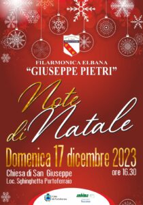 Nuovo appuntamento con la Filarmonica Elbana Giuseppe Pietri per un concerto che si terrà a Portoferraio il 17 dicembre alle ore 16.30 presso la Chiesa di San Giuseppe in Loc. Sghinghetta, al quale siete tutti invitati!