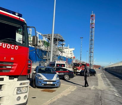 La deflagrazione del secondo ordigno ha consentito l’evoluzione della simulazione verso ulteriori scenari emergenziali, legati all’espansione di un conseguente incendio nelle aree della Banchina Est, nonché alla necessità di evacuazione di un marittimo infortunato a bordo dell’unità rigassificatrice, con il coordinato intervento di Vigili del Fuoco e personale sanitario del 118.