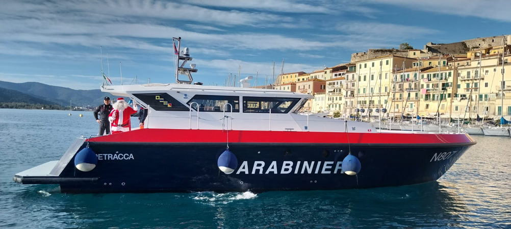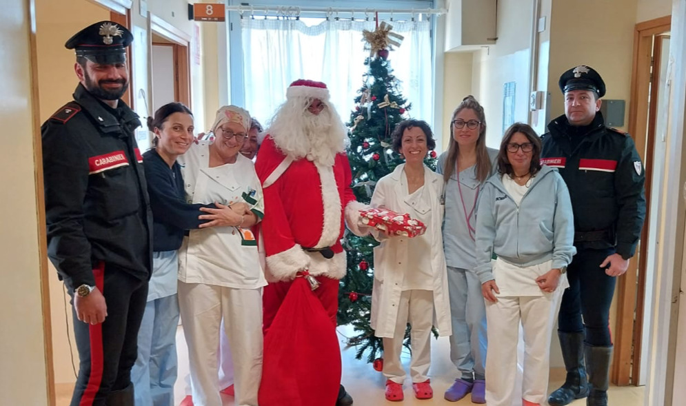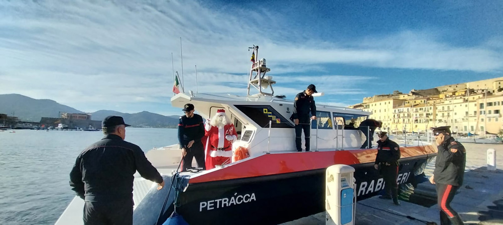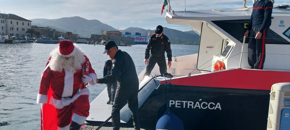 Gradita sorpresa di Natale per il reparto di pediatria dell’Ospedale di Portoferraio. I carabinieri della Compagnia di Portoferraio hanno “scortato” Babbo Natale portando doni e facendo gli auguri di Natale. L’arrivo di Babbo Natale sull’isola è avvenuto a bordo della Motovedetta dei Carabinieri N807 “Petracca” attraccata al molo “Porta a Mare”. Da lì è salito su un’auto della Sezione Radiomobile – una veloce “gazzella” dell’Arma – che lo ha accompagnato con entusiasmo, tra le foto e la sorpresa dei passanti, all’ospedale di Portoferraio dove ad attenderlo vi era la dott.ssa Simona Carcione, responsabile del Reparto di Pediatria, ed il personale infermieristico che hanno ricevuto i militari in un clima di grande cordialità. L’iniziativa è stata propizia: poco prima dell’arrivo una piccola ricoverata è stata dimessa e potrà trascorrere il Natale a casa. Babbo Natale ed i carabinieri hanno lasciato in dono al reparto numerosi gadget a testimonianza della solidarietà e vicinanza a coloro, soprattutto i più piccoli, che attraversano un periodo di sofferenza. “Siamo veramente grati per il pensiero” sono state le parole della dott.ssa Carcione.