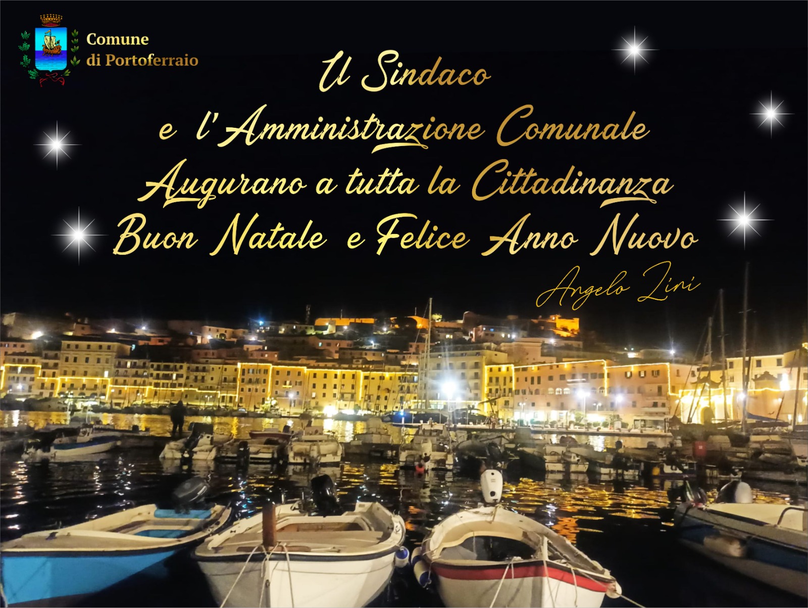 Sono affidati a una cartolina notturna di Portoferraio gli auguri di Buon Natale e Felice Anno Nuovo dell’amministrazione comunale di Portoferraio, firmati dal sindaco Angelo Zini.