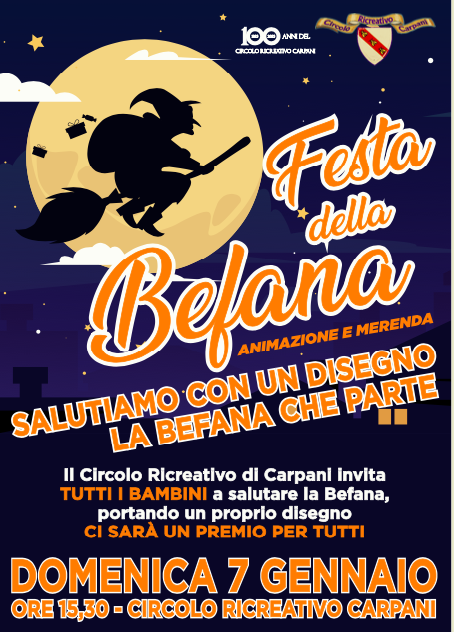 Il Circolo Ricreativo di Carpani invita tutti i bambini a salutare la Befana, portando un proprio disegno.