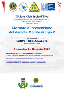 Anche quest’anno il Lions Club Isola d’Elba, in collaborazione con USL Toscana Nord Ovest e Misericordie della Toscana, organizza il service “GIORNATE DI PREVENZIONE DEL DIABETE MELLITO TIPO 2” con l’ausilio del Camper della Salute fornito dal Distretto Lions 108LA Toscana.