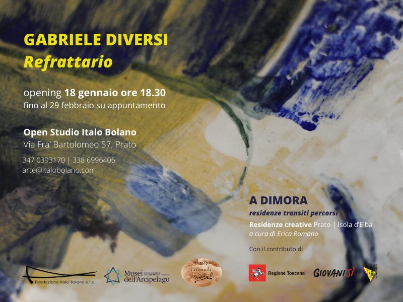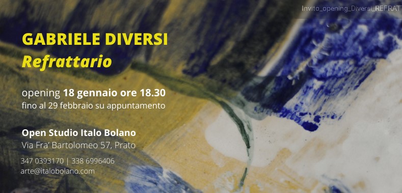 Giovedì 18 gennaio alle ore 18.30 si inaugura Refrattario di Gabriele Diversi (Portoferraio, LI, 1995), di Gabriele Diversi a cura di Erica Romano, presso l’Open Studio Italo Bolano (via Fra’ Bartolomeo, 57 – Prato).