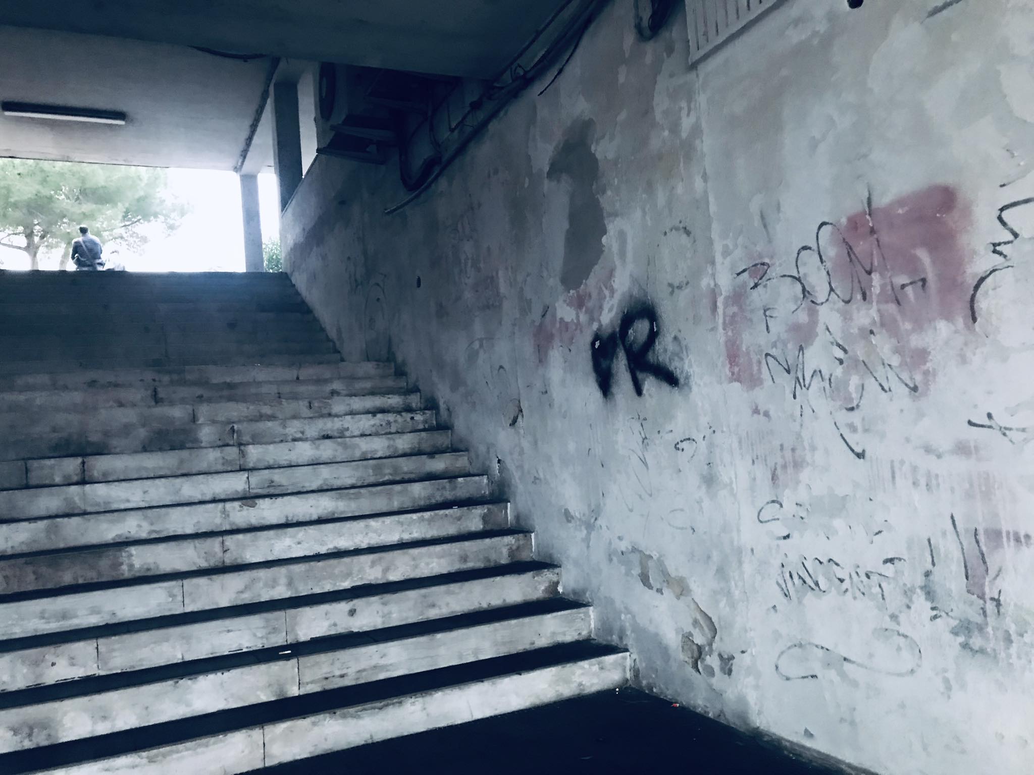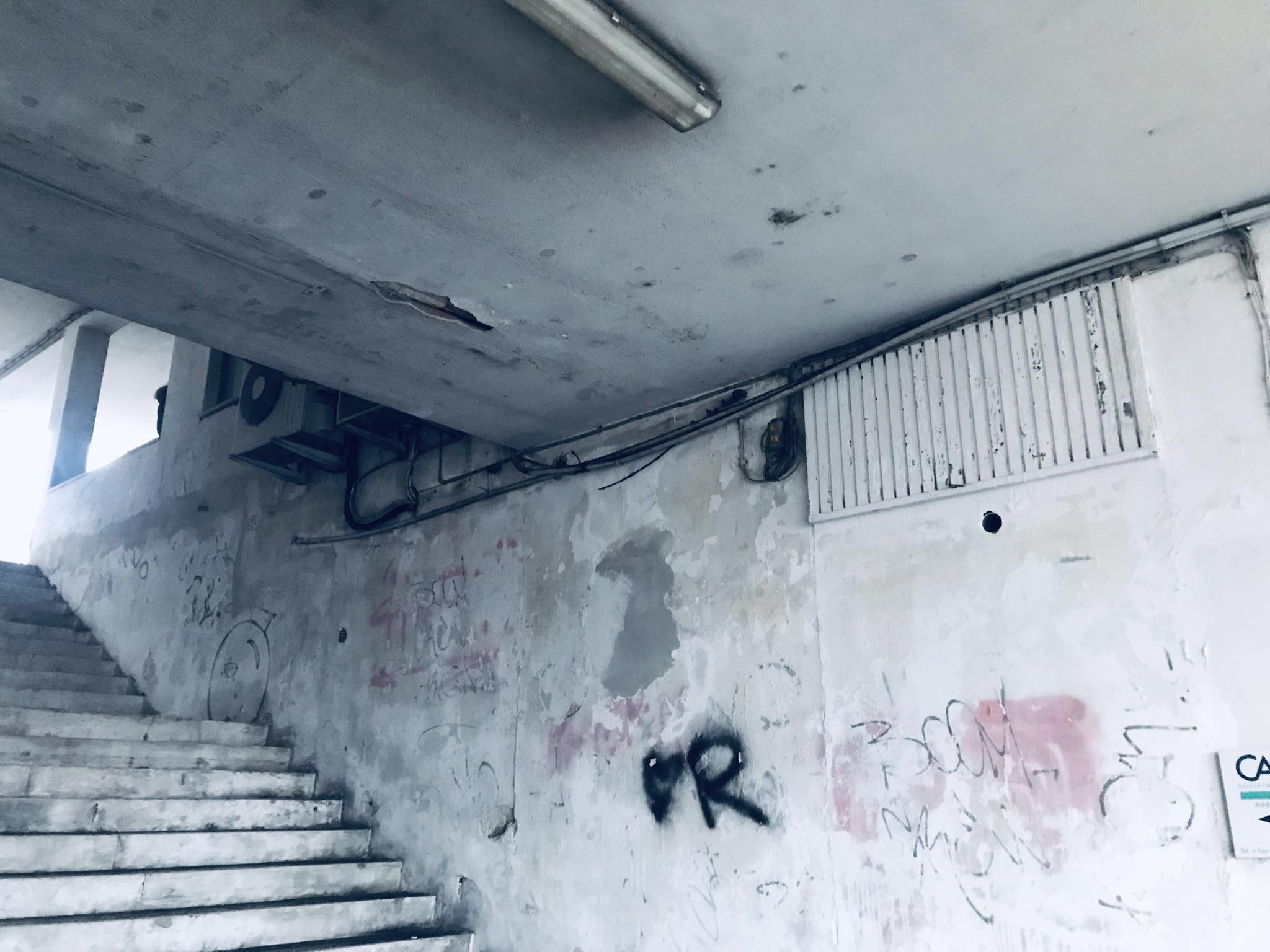 Queste sono le scale che da sotto i portici vanno in Piazza Virgilio …. Terzo mondo ??? Anche quarto!!!! Dal soffitto cadono i calcinacci e i neon sono pericolanti , aspettano che cadono in testa a qualcuno prima di prendere provvedimenti? Per non parlare dei condizionatori pieni di ruggine in bellavista. La spazzatura invece abbellisce il tutto…