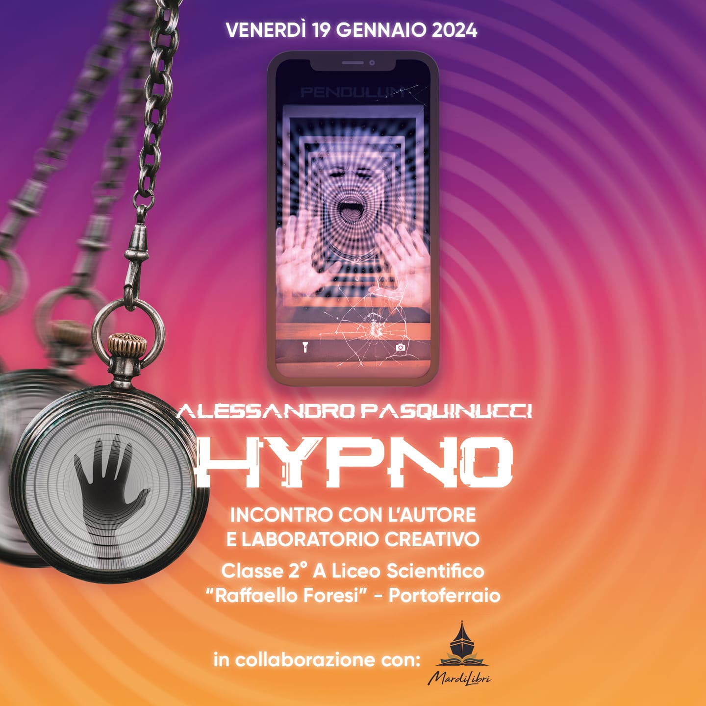 È iniziato venerdì 19 gennaio, con l’incontro online tenutosi al Grigolo, il percorso della Seconda A Liceo scientifico nel laboratorio di scrittura con lo scrittore, copywriter e art director Alessandro Pasquinucci. Il progetto, coordinato dal prof. Corrado Nesi e realizzato grazie alla preziosa collaborazione della libreria Mardilibri e della sua libraia, Silvia Boano, prevede un percorso di analisi e rielaborazione del finale del romanzo thriller e ispirato alle tematiche dell’abuso tecnologico e della comunicazione tossica sui social network “Hypno” (La Memoria del Mondo, 2021) opera prima dello stesso Pasquinucci.