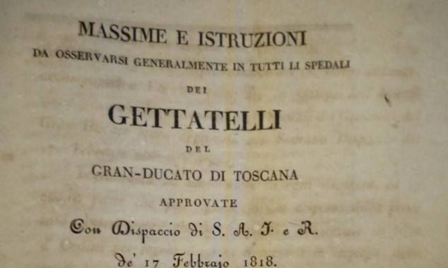 Tali disposizioni legislative son tutte scritte in un opuscolo con il titolo in prima di copertina “Massime ed istruzioni da osservarsi generalmente in tutti li spedali dei Gettatelli del Gran-Ducato di Toscana approvate con dispaccio di S.A.I. e R. de’ 17 febbario 1818” e pubblicate dalla Tipografia Marenigh di Firenze nel 1818.”