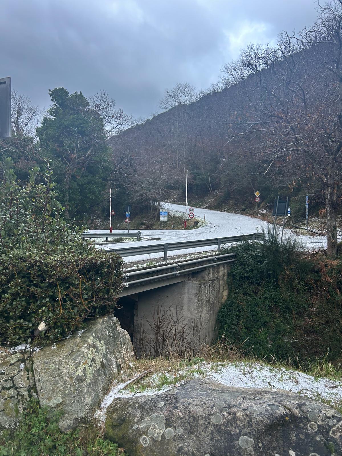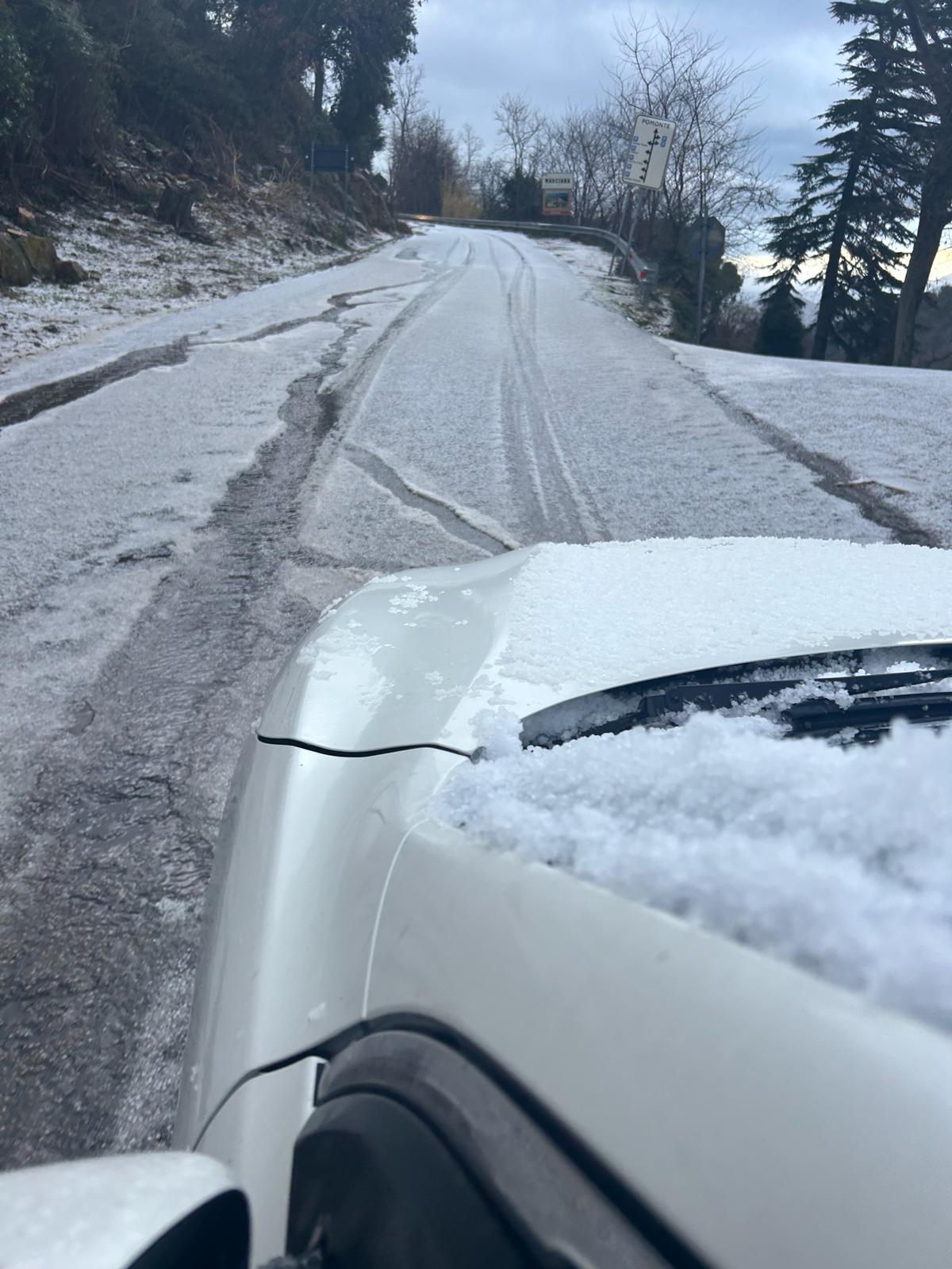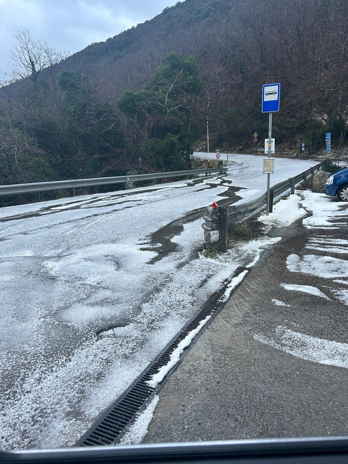 In appena 10 minuti il fenomeno atmosferico ha imbiancato il piazzale della cabinovia