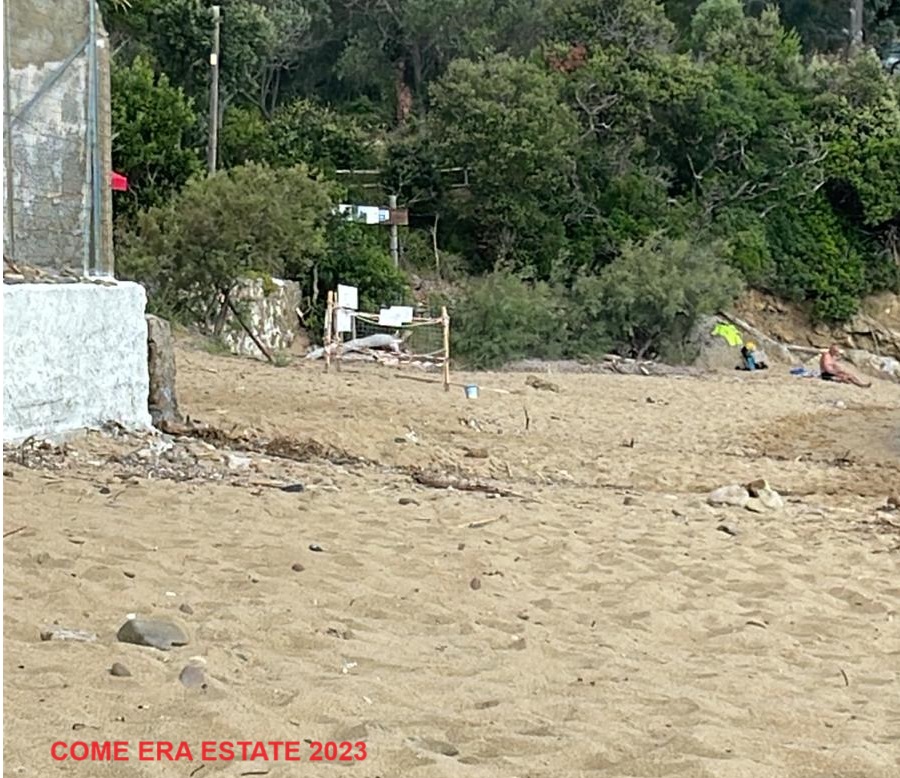 Ora, di fronte al muro dell’agriturismo Galenzana, dove sono stati realizzati recentemente lavori di rifacimento della recinzione, la spiaggia è stata “ripulita” da fastidiosi alberi protetti in zona B di un Parco Nazionale. Un atto illegale, sconsiderato e autolesionistico, visto che le tamerici superstiti mitigavano l’erosione in stato avanzatissimo della spiaggia di Galenzana determinata proprio dalla costruzione di muri e “difese”.