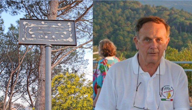 Nessuna segnalazione nessun intervento sui social, silenzio assoluto ad esclusione di un solo cittadino che mi ha inviato un messaggio segnalando il fatto a cui ha fatto seguito un sopralluogo pensando che si fosse staccata e caduta a terra, ma nessun frammento o resti della targa in pietra nella pavimentazione adiacente e nemmeno nella sottostante scarpata coperta di vegetazione infestante: l’unica ipotesi, a questo punto, che sia stata asportata ma non gettata nel sottostante pendio. Prima di pensar male ho telefonato in comune per chiedere se avessero deciso di cambiare nome allo slargo, nessuno sapeva nulla e tantomeno risultava modificata la toponomastica del luogo; a questo punto ho, purtroppo, pensato male ritenendo che qualcuno l’avesse deliberatamente asportata con profonda amarezza e disappunto per quanto rappresentava quella targa.