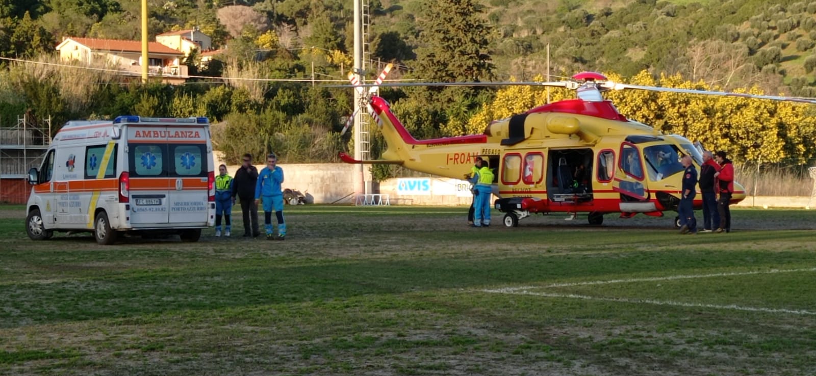 Un incidente stradale avvenuto nel pomeriggio di sabato 2 marzo ha richiesto l’intervento dell’elisoccorso, atterrato nel campo sportivo di Porto Azzurro sospendendo una partita di calcio in corso . Erano le 16,42 quando è arrivata la chiamata al numero unico per le emergenze: sulla provinciale Porto Azzurro – Rio – in località San Felo – una ragazza di 20 anni residente a Portoferraio, alla guida della sua moto, era venuta a contatto con un carro attrezzi cadendo a terra in circostanze ancora al vaglio degli inquirenti. Subito sul posto l’automedica del 118 e una ambulanza della Misericordia di Porto Azzurro. La centrale operativa, vista l’apparente gravità dell’incidente, aveva richiesto l’intervento dell’elicottero Pegaso 2 del 118, che si alzava dalla base di Grosseto per raggiungere in breve il campo sportivo di Porto Azzurro.