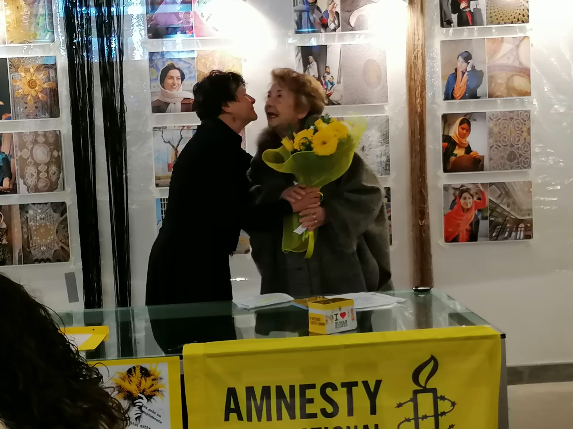 La Professoressa Baldi socia storica di Amnesty, recentemente insignita dal Presidente della Repubblica Sergio Mattarella dell’Onorificenza di Commendatore dell’Ordine al merito della Repubblica Italiana, è stata accolta con un abbraccio e un mazzo di fiori dalla responsabile del Gruppo Amnesty Elba, Marilena Sangalli. Licia Baldi ci ha rapito con il suo intervento: “non ho fatto niente di eccezionale – ha detto- è stata la vita a scegliermi”, ed ha raccontato che il suo impegno di volontaria con il Carcere di Porto Azzurro nasce nel 1986, periodo di grande fervore di rinnovamento nella scuola, in cui il distretto scolastico di cui faceva parte come insegnante, volle aprire al carcere le porte dell’istruzione. Arrivarono tante richieste di persone che volevano studiare e da lì si attivò un percorso virtuoso fino ad arrivare a instituire con i colleghi del liceo una sezione staccata del liceo in carcere. “Noi insegnanti volontari – ha aggiunto- offriamo strumenti fondamentali per dare una motivazione a vivere: cultura e lavoro, sanciti dall’art 27 della la Costituzione che parla di rieducazione, con alti e bassi siamo andati avanti e oggi, dopo 12 anni di volontariato, esiste un corso di alfabetizzazione, percorsi universitari, teatro, biblioteca, ma l’essenziale è l’ascolto della persona, nel carcere per rieducare l’ascolto funziona più della coercizione “.