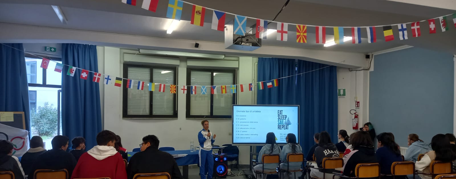 Una lezione interessante e partecipata sul mondo della Vela, le classi olimpiche, gli aspetti tecnici, ma anche semplicemente la descrizione di una giornata-tipo dell’atleta, dall’alimentazione alla preparazione atletica, alle lezioni con il mental coach, all’importanza del riposo.