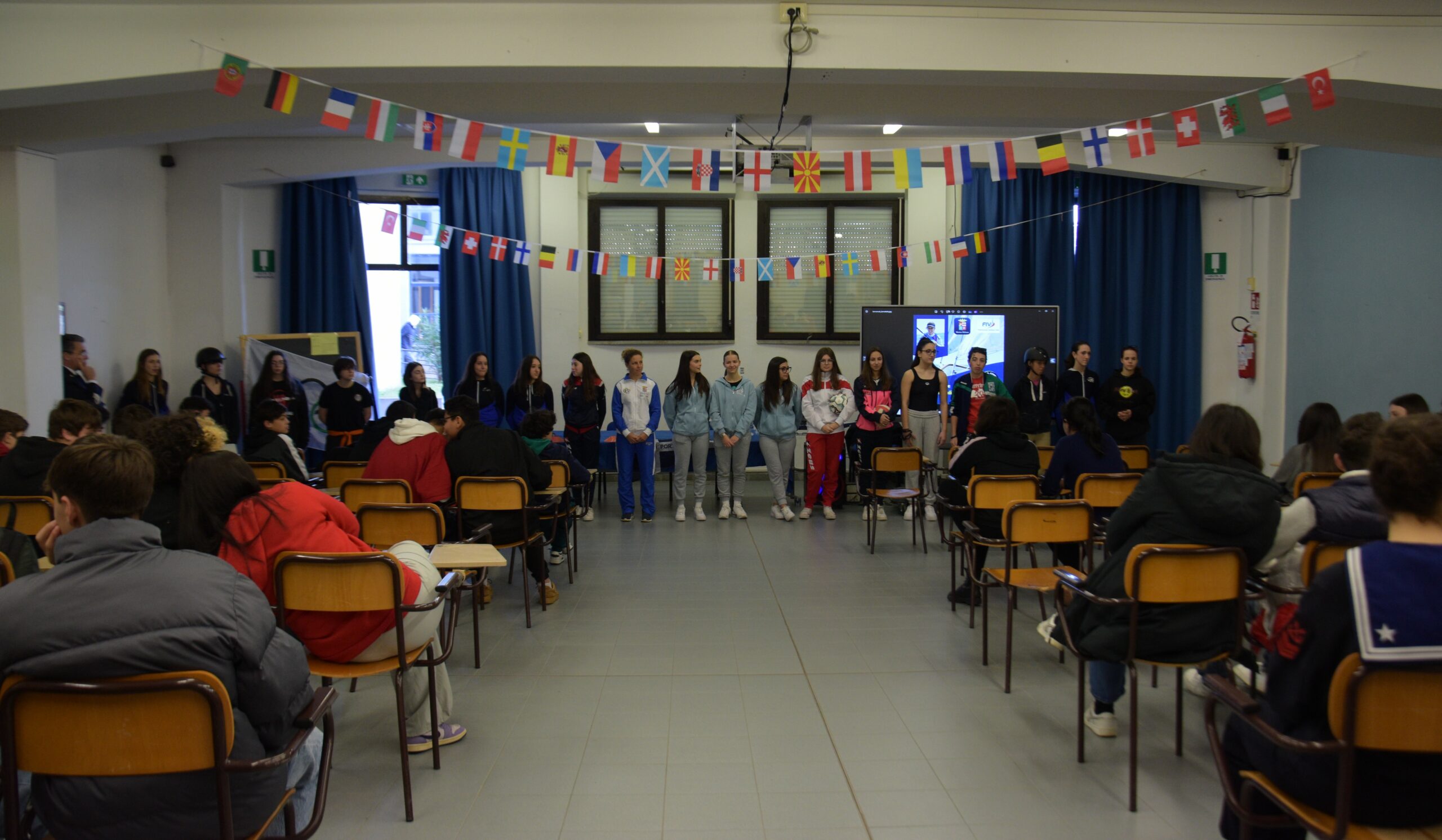 La Campionessa mondiale di Vela 4.70 Benedetta Di Salle, nella sua bellissima divisa della Marina Militare, alla presenza del Comandante Altavilla della Capitaneria di Porto di Portoferraio, è stata infatti accolta in aula magna con un’entrata coreografica da una delegazione di studentesse/atlete dell’Istituto, ognuna con la propria divisa societaria per rappresentare e presentare le discipline praticate: