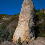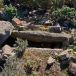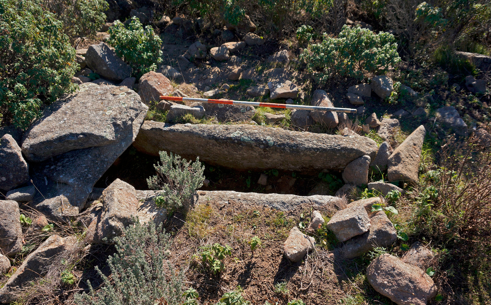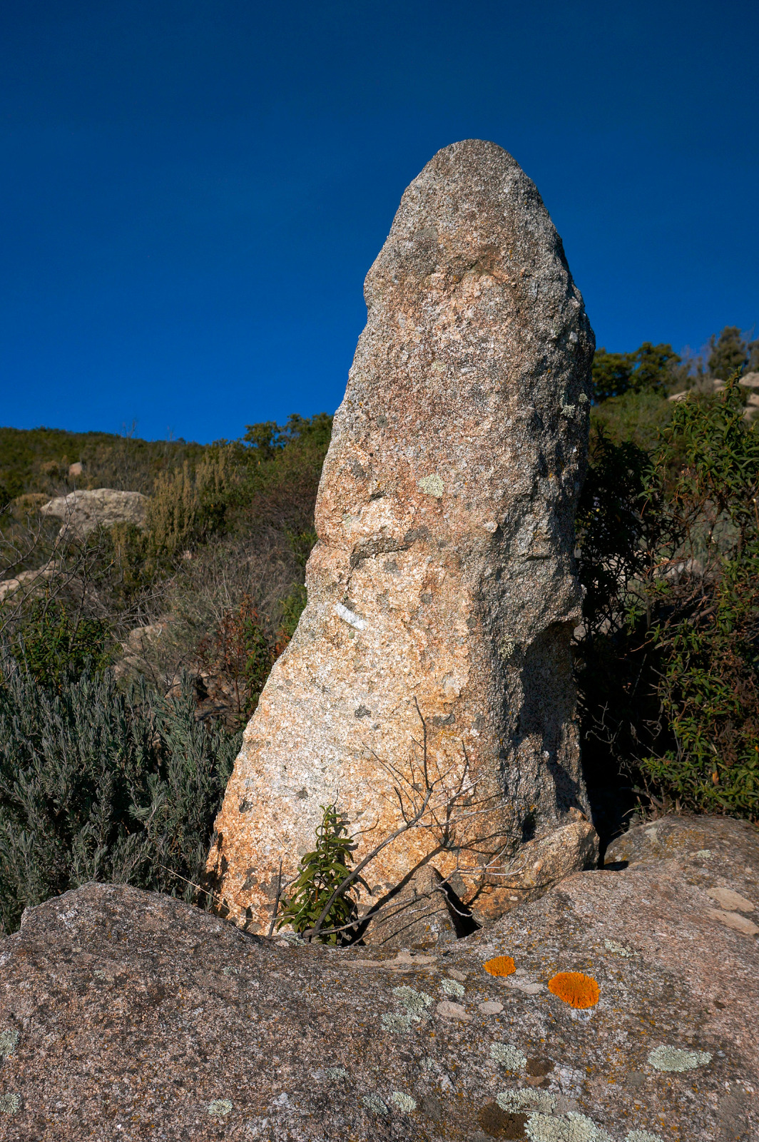 Più su, avventurandosi per circa 250 mt dal sentiero 135, si trovano, non senza difficoltà, un’altra tomba e un bel menhir affacciato su Fetovaia. L’area è immersa nella vegetazione e segnalata su Google Maps come “Necropoli della Forca” (430 m).