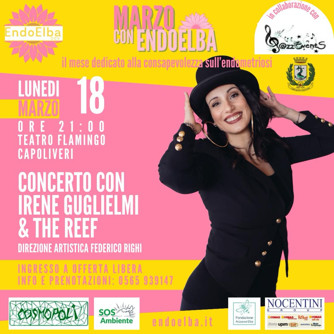 L’ associazione EndoElba per tenere alta l’attenzione sull’endometriosi, una patologia che colpisce le donne, ha organizzato un concerto che con protagonista la bravissima cantante elbana Irene Guglielmi che sarà accompagnata da The Reef . Un evento che vede la direzione artistica di Federico Righi e la collaborazione di PazzEvent