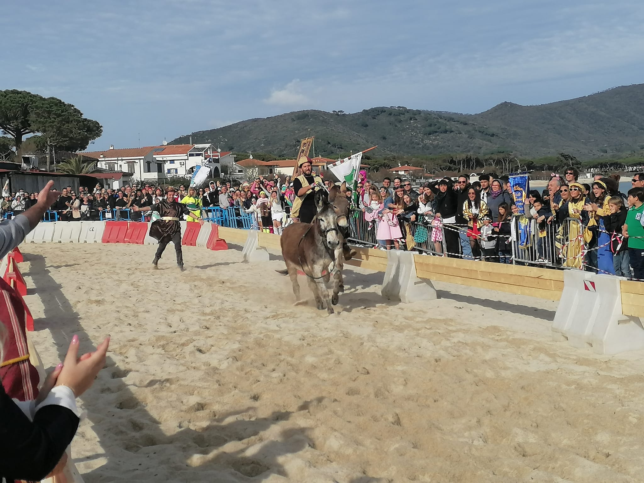 Taglia il traguardo e vince la finale della decima edizione del Palio dei Somari l’asino Lara inseguito dal fantino Astrit.