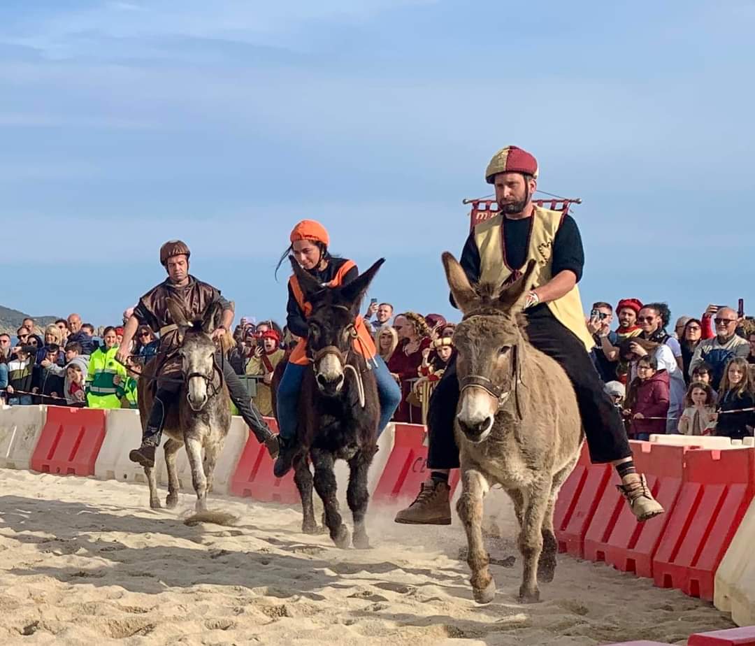Finalmente una bella giornata dal clima primaverile e Marina di Campo ha festeggiato la decima edizione del Palio Umoristico dei Somari. C’è molta soddisfazione tra gli organizzatori per l’ottima riuscita dell’evento promosso dalla Proloco e realizzato con la collaborazione e il contributo del Comune di Campo nell’Elba. Per l’ennesima volta il rione il Piano si aggiudica il palio e non sono mancati i colpi di scena tra gli animali in gara, tant’è che il somaro abbinato al rione vincitore ha tagliato il traguardo senza il fantino, caduto a terra per un improvviso disarcionamento. Il severo regolamento però prevede anche questa opportunità e quindi tra il tifo dei sostenitori e quello del numeroso pubblico intervenuto, il Piano porta a casa il prezioso drappo. È stata una giornata divertente allietata anche dalla musica di una street band veramente particolare con una performance musicale molto coinvolgente. La tanta gente venuta a Marina di Campo ha potuto assistere alla sfilata allegorica che precede la gara, dove i rioni si sono distinti per bravura e fantasia e negli stand,