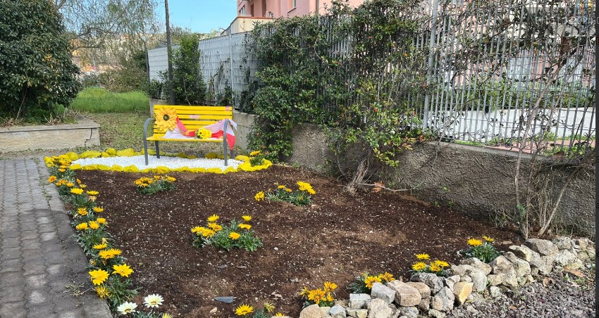 Coordinato dalla Referente alla Salute Roberta Cecchini e coinvolgendo i ragazzi dell’agrario del Prof. Alessandro Petri, il primo atto si è svolto questa mattina, inaugurando un angolo di giardino giallo con la panchina (materiale in parte fornito dall’associazione e realizzato dagli studenti).