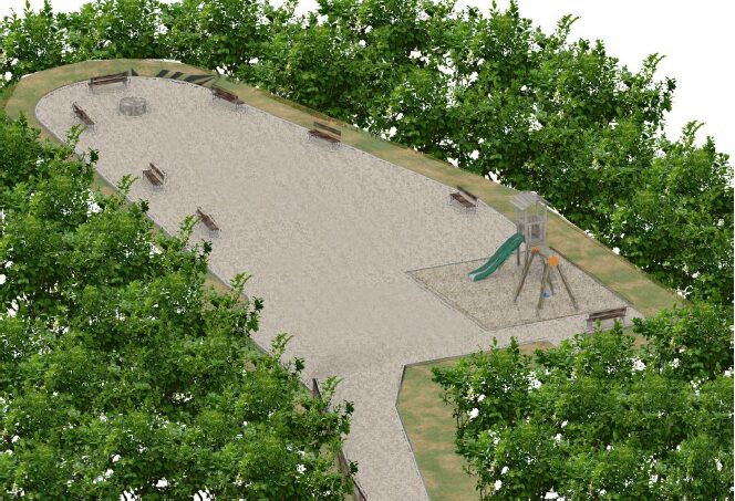 L’area pedonale resterà invariata nelle dimensioni, al suo interno verrà collocata l’area gioco per i bambini, rivestita con materiale naturale e attrezzata con giochi dedicati.