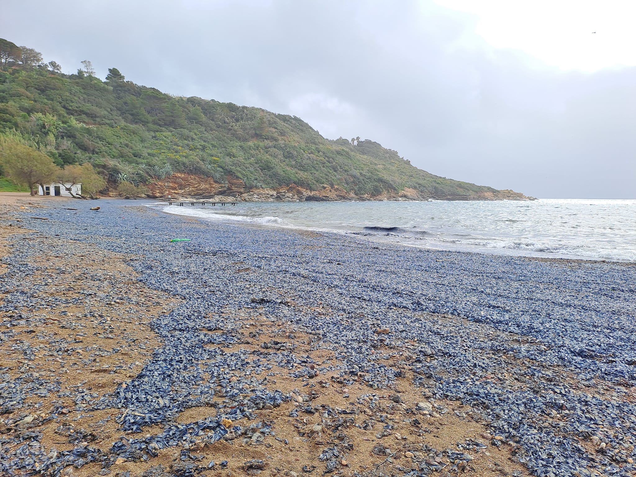 Tante foto, tanta curiosità, ma anche un grosso problema ambientale da risolvere al più presto. La enorme presenza delle velelle, le piccole meduse di colore blu che hanno invaso in questi giorni le spiagge elbane battute dai venti da sud, ha dapprima attirato l’attenzione di elbani e turisti che hanno scattato centinaia di foto ma adesso sta diventando un grande problema. Il cattivo odore che sprigionano dopo lo spiaggiamento, dovuto alla loro decomposizione, sta ammorbando già dalla giornata di Pasqua l’aria, creando non pochi problemi nei tratti più vicini ai centri abitati, come a Porto Azzurro e Marina di Campo, ma anche a Lacona.