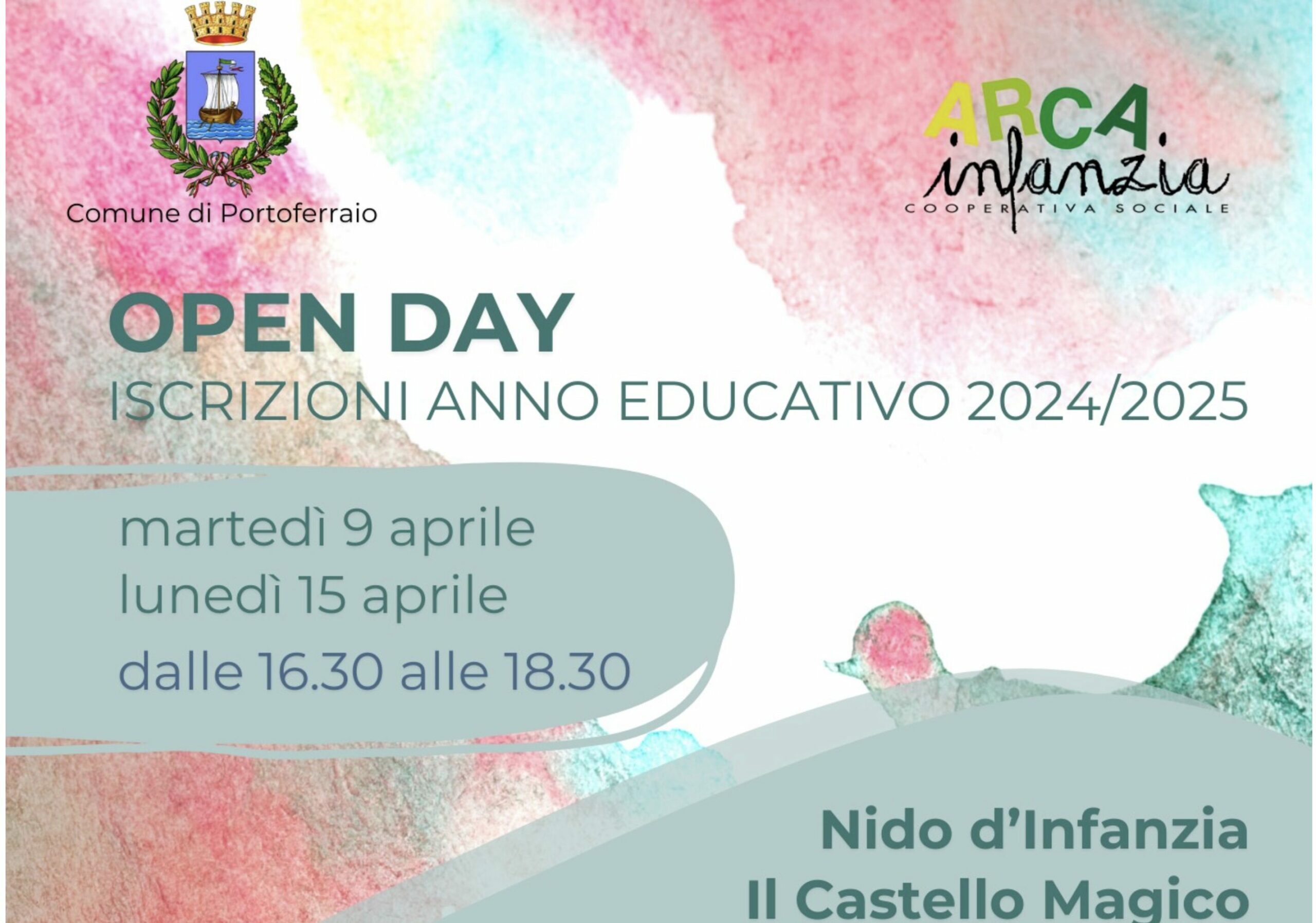 Sono aperte le iscrizioni ai nidi d’infanzia per l’anno educativo 2024-2025. Le domande di ammissione devono essere presentate dal 1 al 30 aprile 2024 consegnandole o inviandole al Protocollo del Comune di Portoferraio (protocollo@comune.portoferraio.li.it). La necessaria modulistica può essere scaricata direttamente dal sito internet istituzionale (www.comune.portoferraio.li.it) o può essere ritirata nell’Ufficio Istruzione del Comune. Le famiglie in difficoltà possono rivolgersi ai Servizi Sociali dell’A.S.L.: se questi verificano una situazione di disagio, il bambino ha la precedenza nell’ammissione al nido. Per poter accedere al nido tutti i bambini, devono essere in regola con gli obblighi vaccinali (L.R.51/2018). La retta di frequenza mensile varia in base al tempo di frequenza – fino alle 13,30 o fino alle 16,00 – e in base all’I.S.E.E. . Martedì 9 e lunedì 15 aprile, dalle ore 16.30 alle ore 18.30, sarà possibile visitare i due nidi d’infanzia comunali, “Il castello magico” in Via Guerrazzi e “La gabbianella” in via Roster (Loc. Sghinghetta). Per informazioni gli interessati possono rivolgersi all’Ufficio Istruzione Pubblica, tel. 0565-937247, e-mail: a.franceschini@comune.portoferraio.li.it